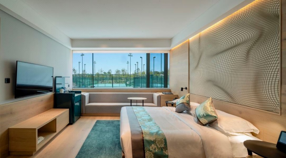 北投綠心網球酒店位于北京市通州區、北大運河南畔,城市綠心森林公園內。酒店交通便捷通達,距北京城市副中心三大建筑(大劇院、圖書館、博物館)5分鐘車程,距離北京市級行政中心10分鐘車程,距環球影城15分鐘車程,距首都機場39分鐘車程。為方便住客游玩,酒店還為前往環球影城的住客提供免費的往返接駁班車服務。